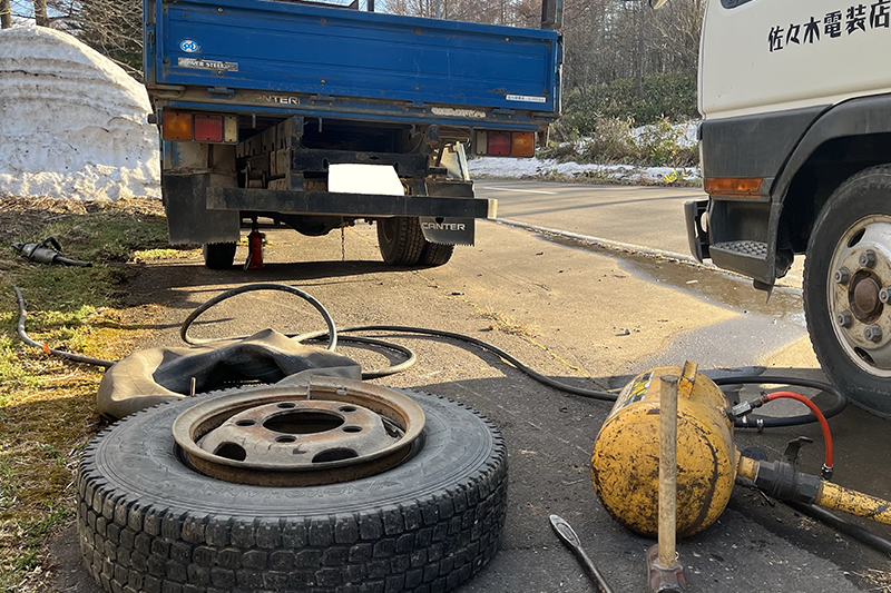 出先でパンクしてしまった、駐車場でパンクしてしまったのなど、さまざまな理由で車を入庫できない方へ出張サービスで対応させていただきます。